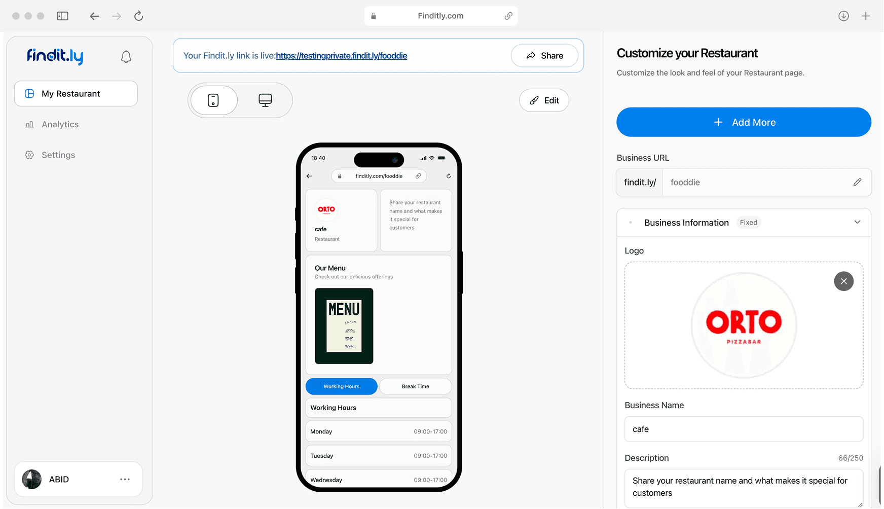 Create a powerful, branded link for your business with Findit.ly! Customize your page, track performance, and boost engagement